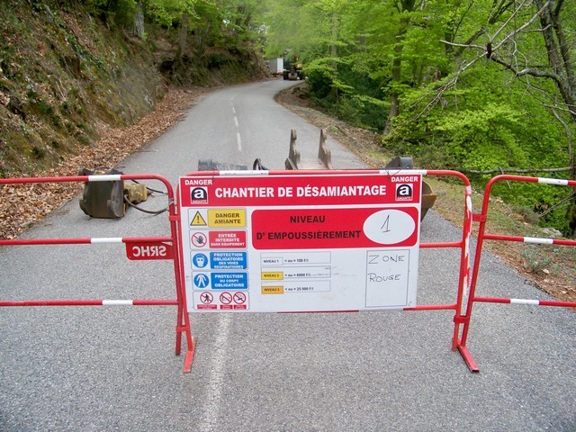 Plusieurs tronçons de la route sont concernés par la présence d’amiante et par conséquence seront traités avec des moyens spécifiques.